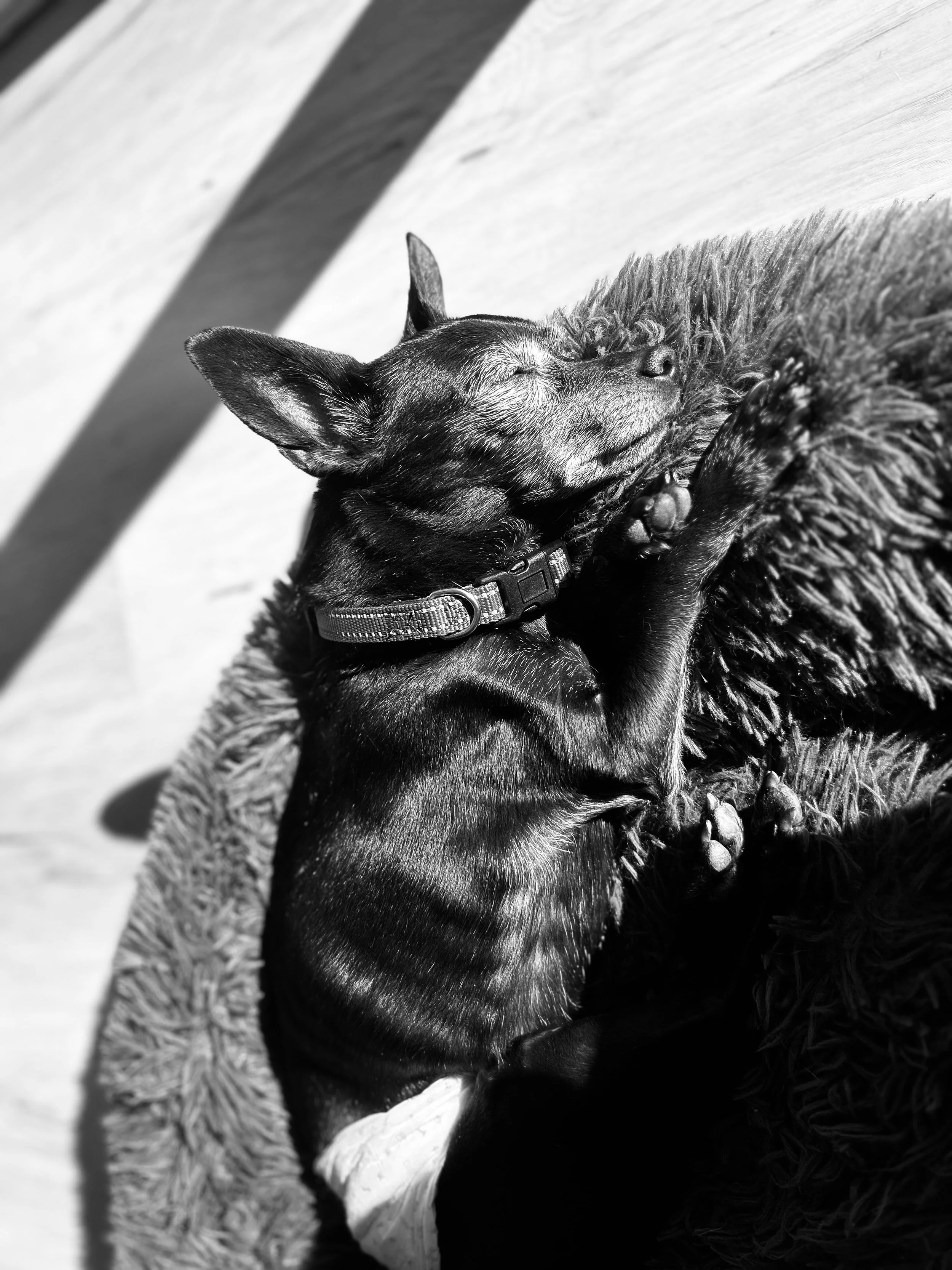 A dear friend of mine recently reminded me of a powerful quote from Goethe’s dark play Faust…one that feels made for this exact moment. This morning, Trip found the last warm patch of sunlight on Lynne’s wooden floor and curled onto it, as though holding on to the world in the most peaceful way he could. His once-sturdy body is fragile now, his beard gone grey.